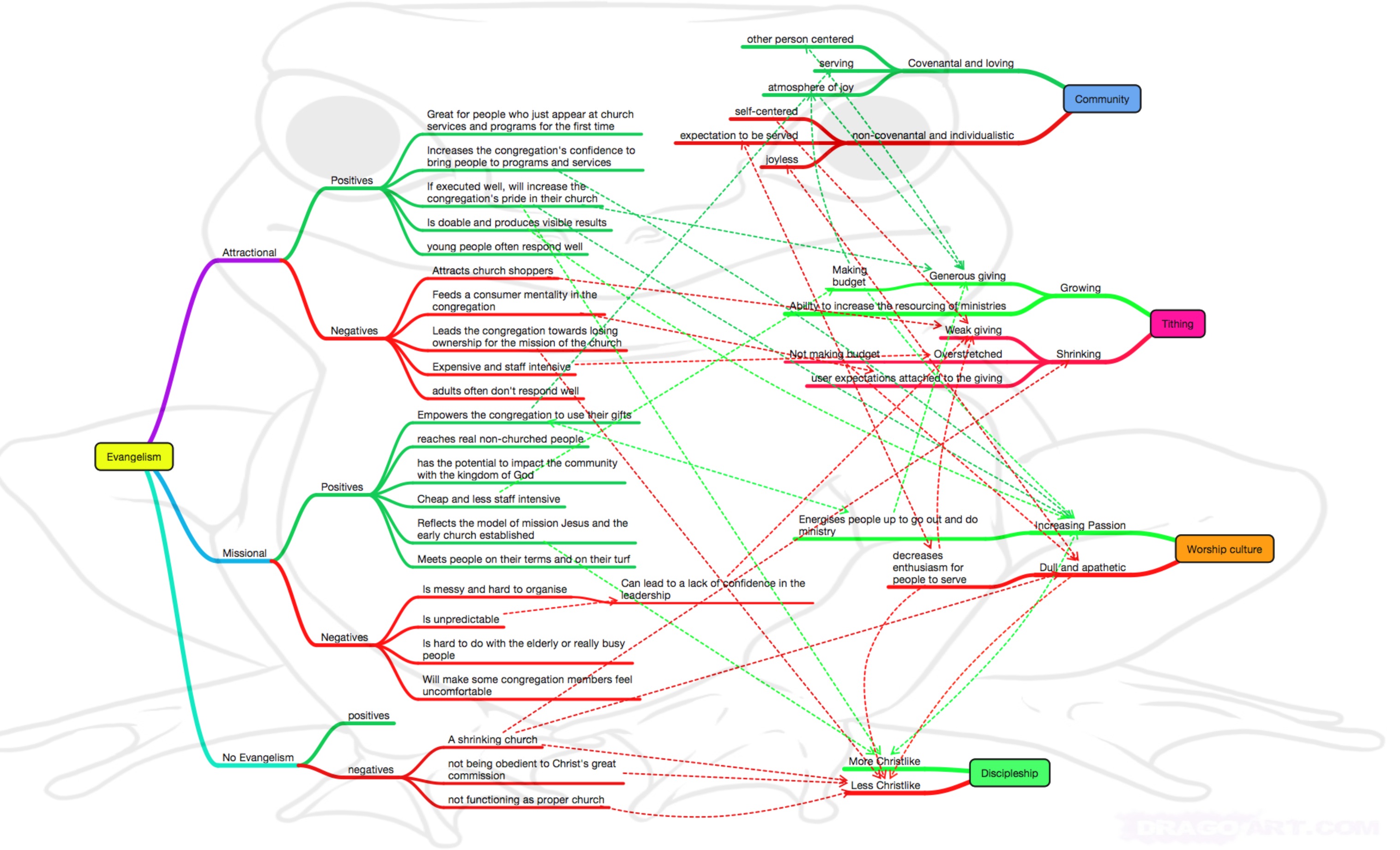 A more informed and nuanced strategic thinking about evangelistic strategies, might look like a mind map, where the complexity of the frog system is taken into account: